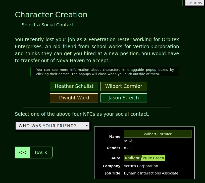 Next, I shifted gears and built something I called Vertigo, a Choose Your Own Adventure system using React components. The goal was to create something that functions more like a web application than a traditional game, leaning into my web experience. This approach allowed me to play around with React while showing off some of my CSS skills to create a visually appealing interface.