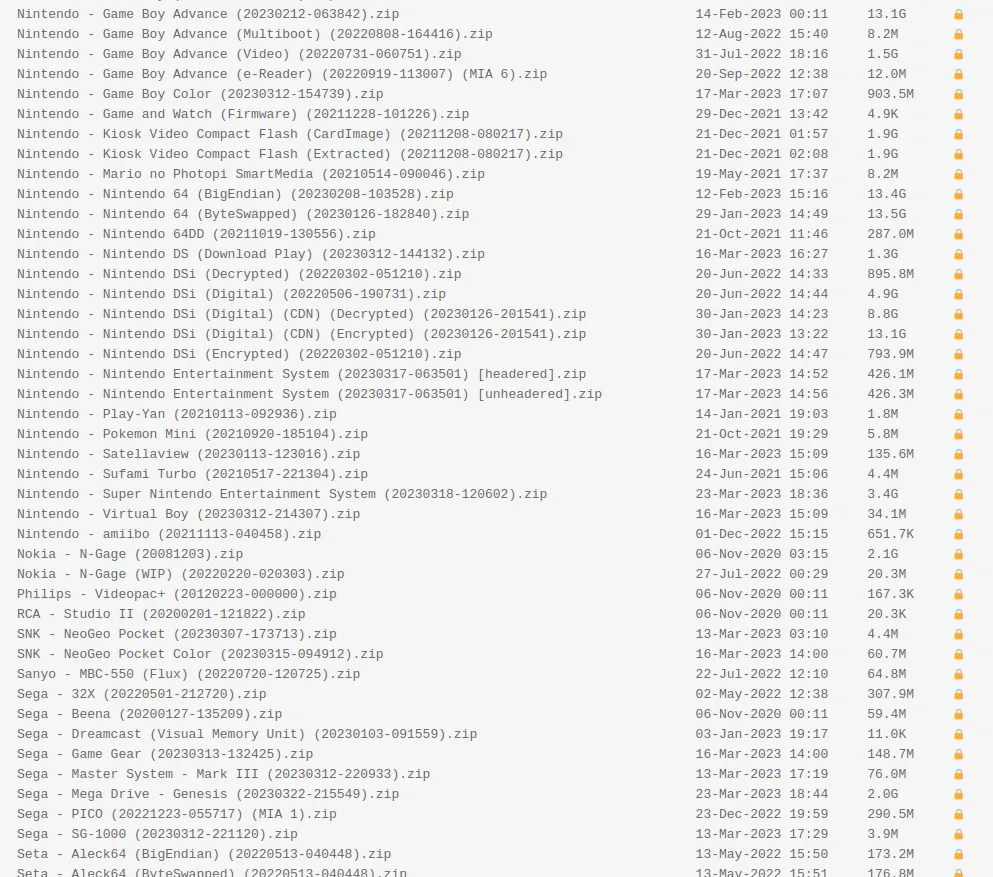 As you can see, it's a lot of stuff. And as you might imagine, a lot of bandwidth is used providing this service. That's why you can see the little lock icon to the right in the image. You won't be able to download these unless you make a free Internet Archive account. For some, this might be too much effort, but I think it's easy and completely worth it.