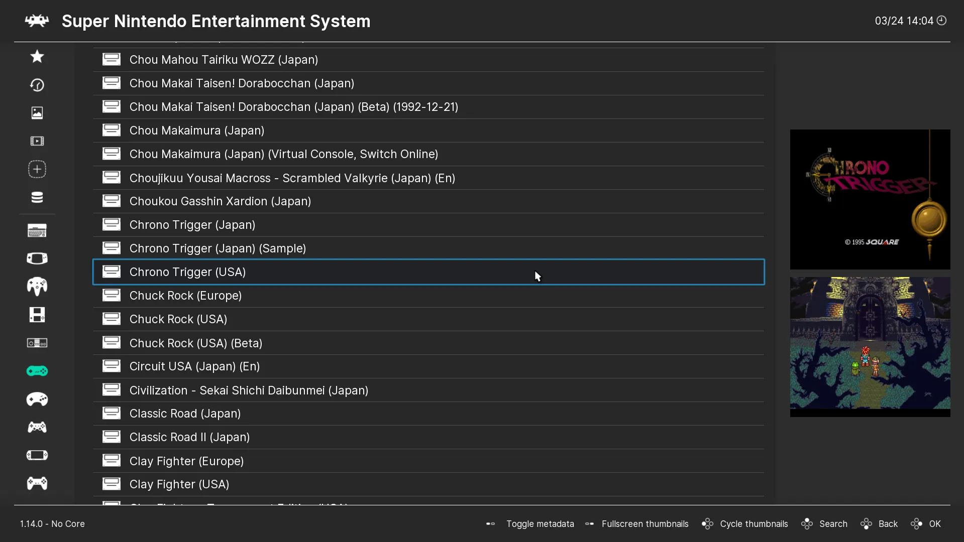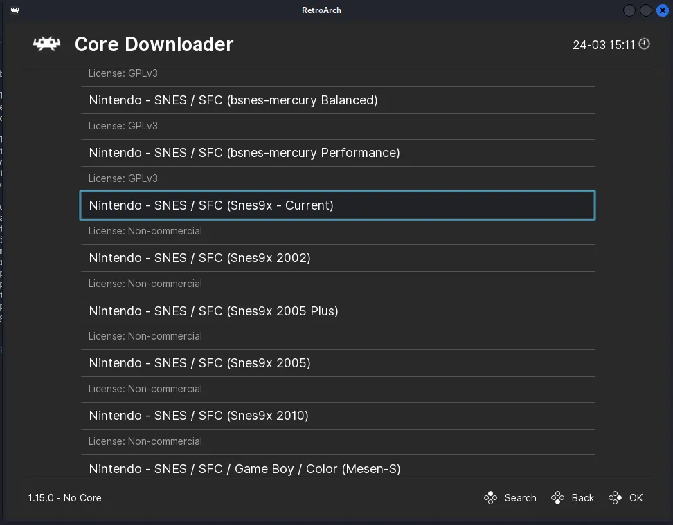 In Retroarch an emulator is called a "core". Without a SNES emulator core, we can't play any of these SNES roms. You may be asking, "What is the correct core to use for this system," and the answer to the question is complicated and one that you'll only decide for yourself after using several of them.