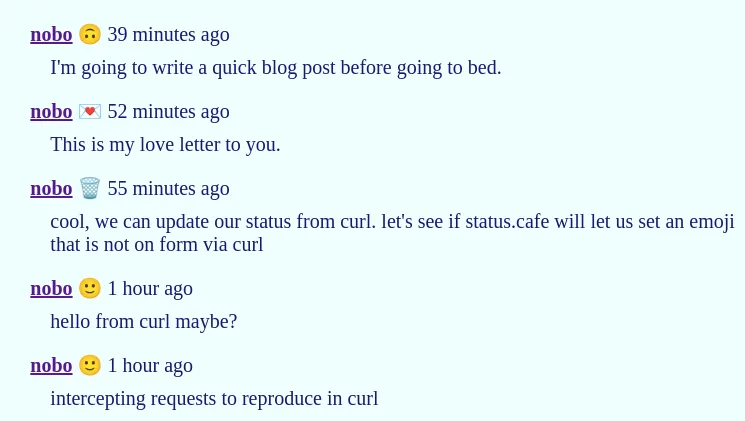 We'll be using this cute site, status.cafe, a simple status sharing website to demonstrate how this can be quite neat.