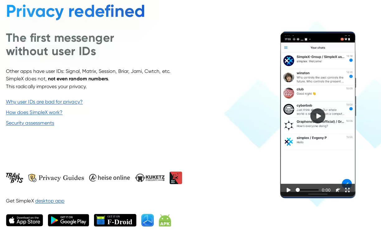 - Ideally, if servers are involved, it must be self-hostable (for decentralisation) (meaning the serverside code must also be fully open-source -- see how this is no longer the case with Signal)
