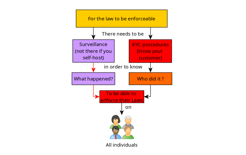 So in this case, you are taking out the first pillar that is required for law enforcement ; Surveillance , the government would have to knock on your door, and FORCE you to give them the data of your users (which they have done by the way; see kolektiva.social).
